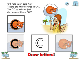 - embeds each letter in a picture (Talking Shapes) that helps children remember both the sound and the shape of the letter