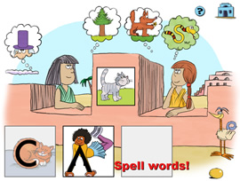 Play Games to name target pictures and select the correct letters to spell the word. (graphic – Spell words)
